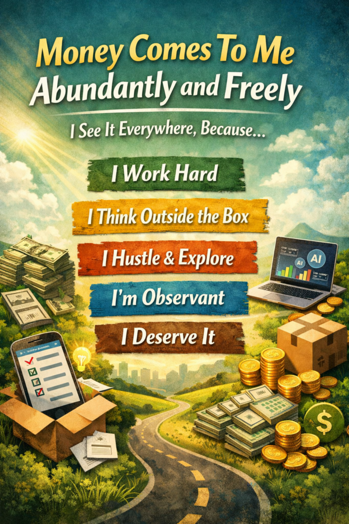 Money doesn’t come from saying the words alone. It comes from what the words train you to notice and do. If you can hold the belief that money comes to you abundantly and freely because you are active, observant, and willing to act, you start playing a very different game. And that game has opportunities everywhere.